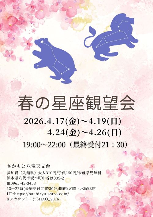 平素より、さかもと八竜天文台をご利用いただき誠にありがとうございます。