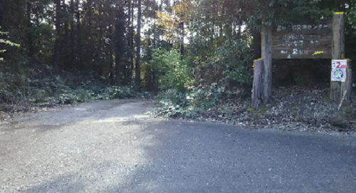 ①まず 219 号線から、この看板の手前を左へ登り始めます 。(残り6km)