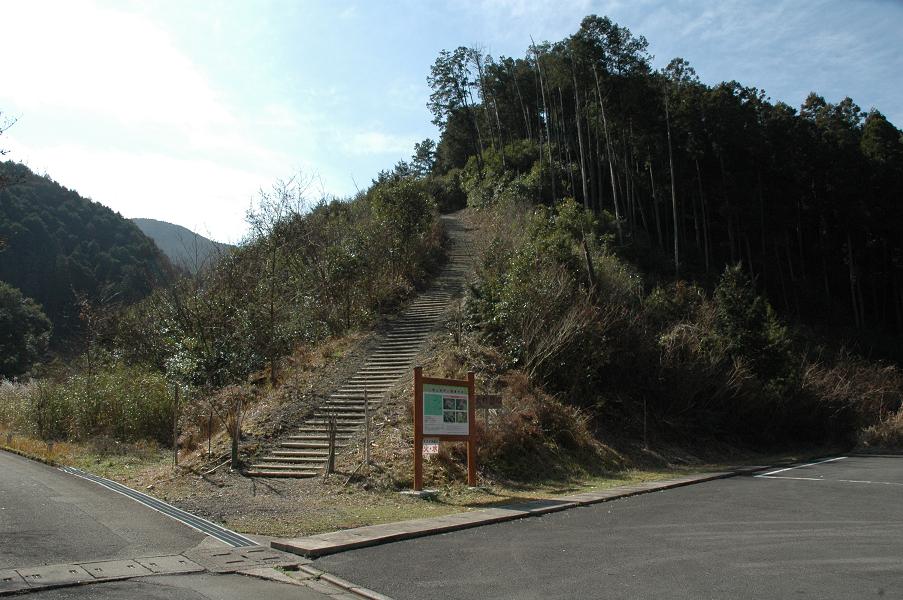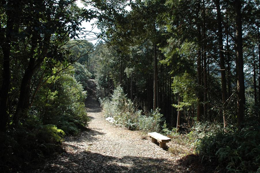 しばらく歩くと階段の上の 天文台が見えてきます。帰り道は行きとは反対方向 に分岐をお戻りください。