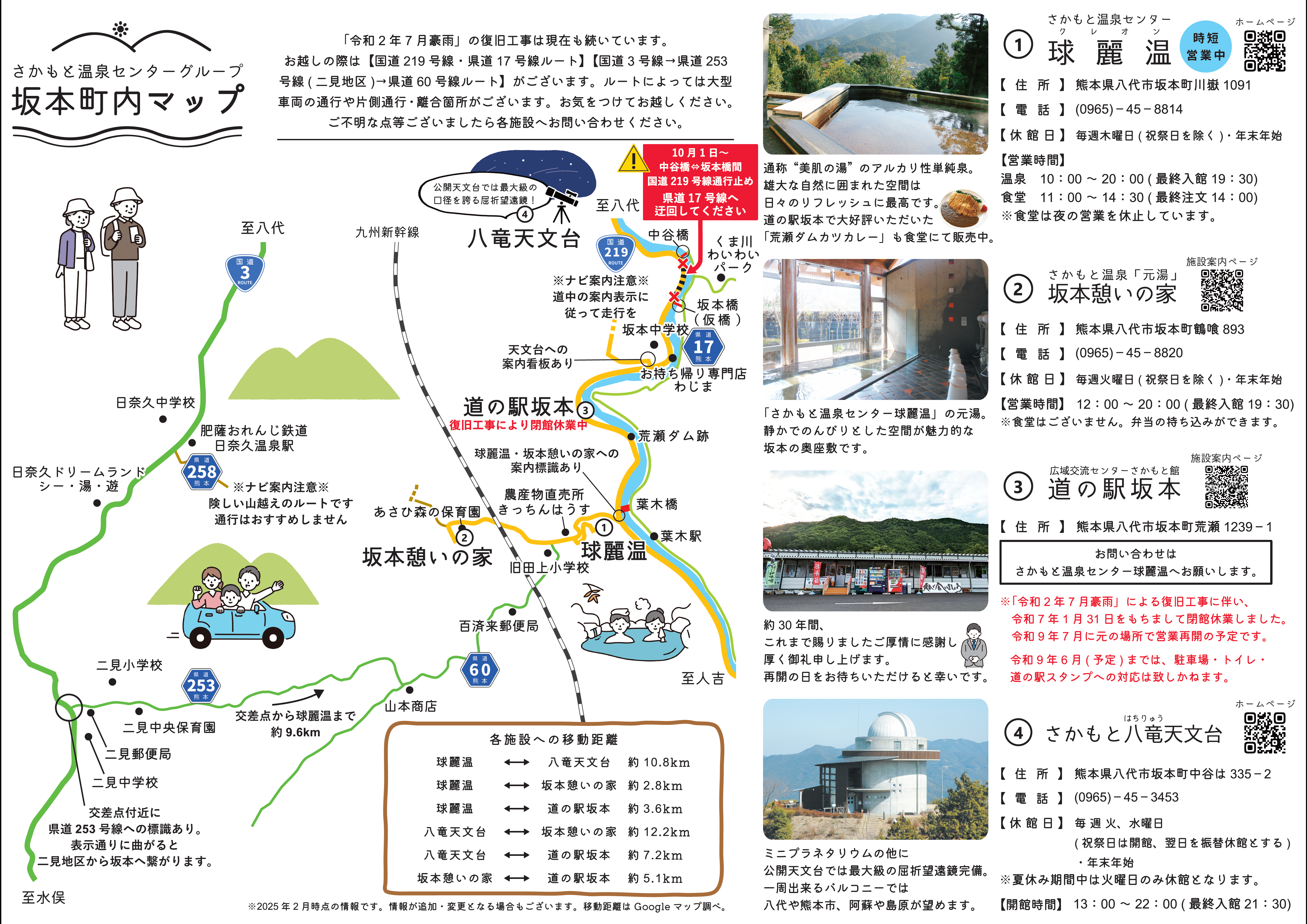 また、国道219号線が復旧工事のため車線規制(通行止めや迂回路、交互通行)や砂利道等がございますが、天文台へ至る道は走行可能ですので、安全に留意してお越しください。
