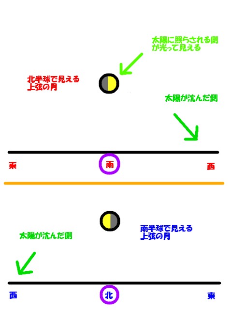 Q7. 「日本では夕方西の空に見える三日月は右下が光っていて左上が欠けて見えますが、南半球では逆になるのですか? ブログでそういう話が出ていましたし、画像検索でも出てきますが?」(女性/30代)