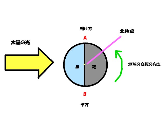 A9:ほぼ同じです。試験の答えとしては「同じ」と答えて大丈夫です。しかし、細かいことをいえば、昼の長さの方が十数分程度長くなっています。昼の方が長いのは、日の出や日の入が太陽の上の辺が地平線(水平線)に接する瞬間となっていることや大気によって光の屈折現象が起き、実際よりも太陽が浮き上がって見えることによります。昼の長さと夜の長さとの差が最も少なくなるのは、春分の4日ぐらい前と秋分の4日ぐらい後になります。