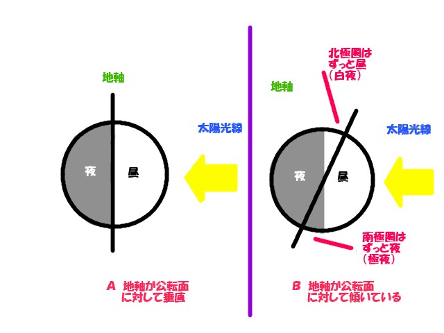 A10:地球の公転面に対して地球の自転軸が約23.5度傾いているからです。真夏の影のでき方を思い出してください。影は足元の辺りにしかできませんね? つまり、真夏には太陽は頭の真上から照らしています。一方、冬には影が長く伸びています。つまり、太陽は斜めから照らしています。こうした違いが起きるのは、地軸が地球の公転面に対して傾いているからです。真上から照らされる真夏には太陽の光をたくさん受けるので地面が暖められて暑くなります。一方、太陽が斜めから当たる冬には太陽の光を十分に受けられないので、地面はあまり暖まらずに寒くなります。太陽との距離は関係ありません。実際、北半球が冬のとき、地球は公転軌道上で太陽により近いところにありますし、北半球が夏のとき、地球は公転軌道上で太陽からより遠いところにあります(近日点と遠日点との距離の差は約500万km)。