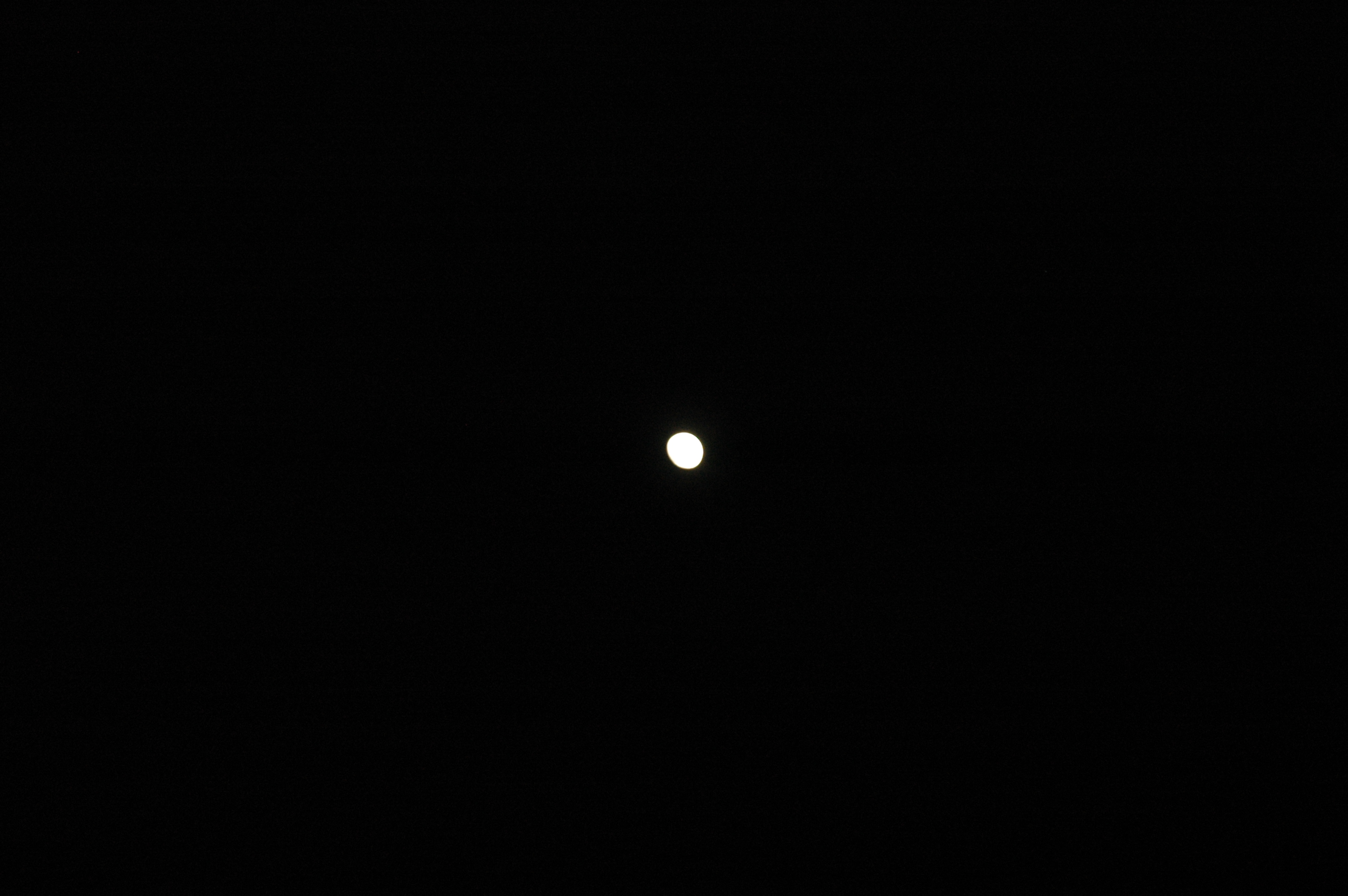 【追記】下の写真は2015年6月29日(月)にシャッター速度も何も考えずに一眼レフカメラのオートフォーカスで月(月齢13くらい)を撮影したものです。肉眼では周囲に土星やさそり座の星々が見えていますが、周りには全く何も写っていません。月の模様(海)すら写っていませんから、月の模様が鮮明に映るようにするにはもっとシャッター速度を短めに設定しなければならないのは明らかです。そうなれば、いまですら写っていない周囲の星は当然写りません。