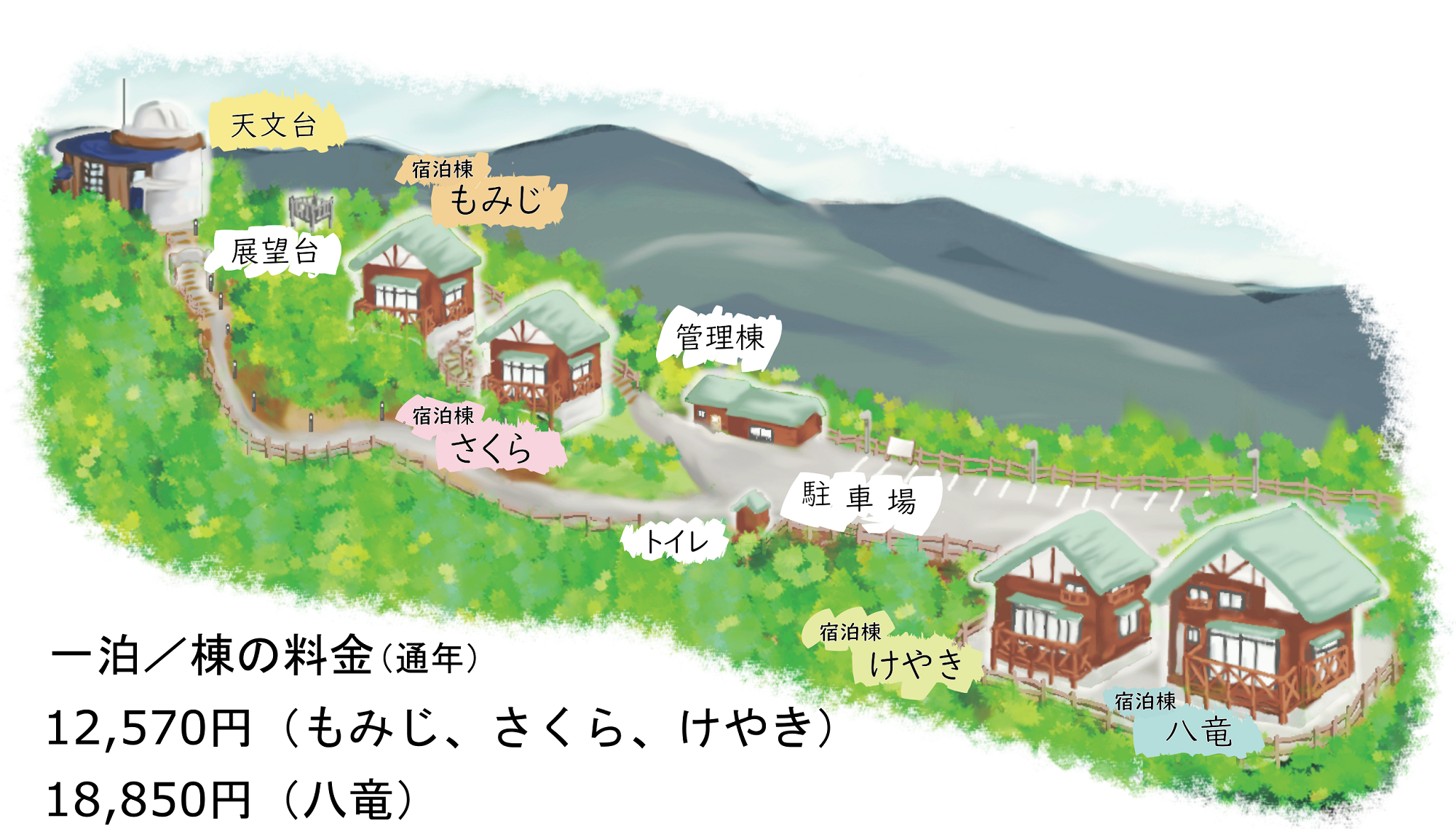 - 料金は一棟一泊あたりの金額であり、全て税込です。