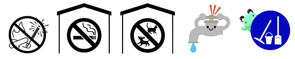 - 室内での焼肉や、ベランダでのバーベキュー、敷地内での花火や焚火はご遠慮ください。