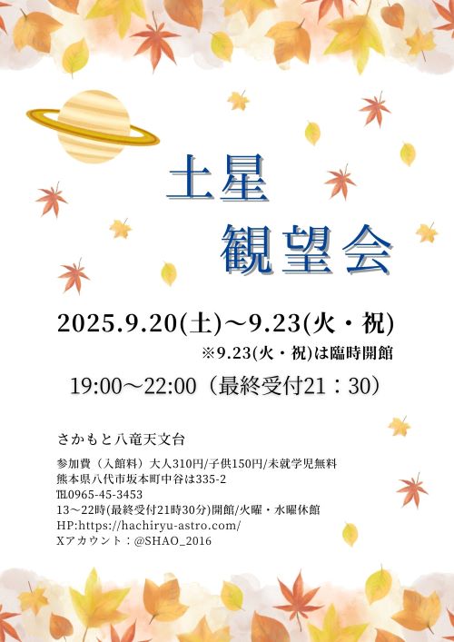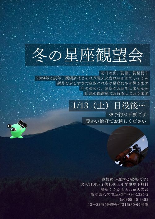 今後とも、さかもと八竜天文台をよろしくお願いいたします。