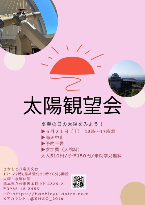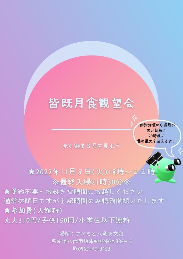 さかもと八竜天文台では、パブリックビューイングを開催いたします。