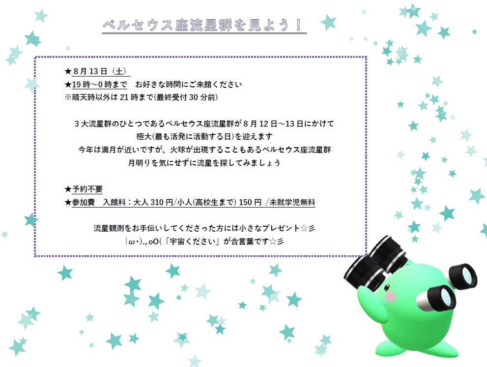 予約不要・天文台入館者であれば参加可能ですので、皆さまお誘いあわせの上ぜひご参加ください。