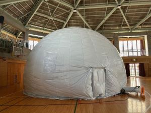 - 空気で膨らませるビニールドームと小型投影機を用いて、プラネタリウムを出前します。